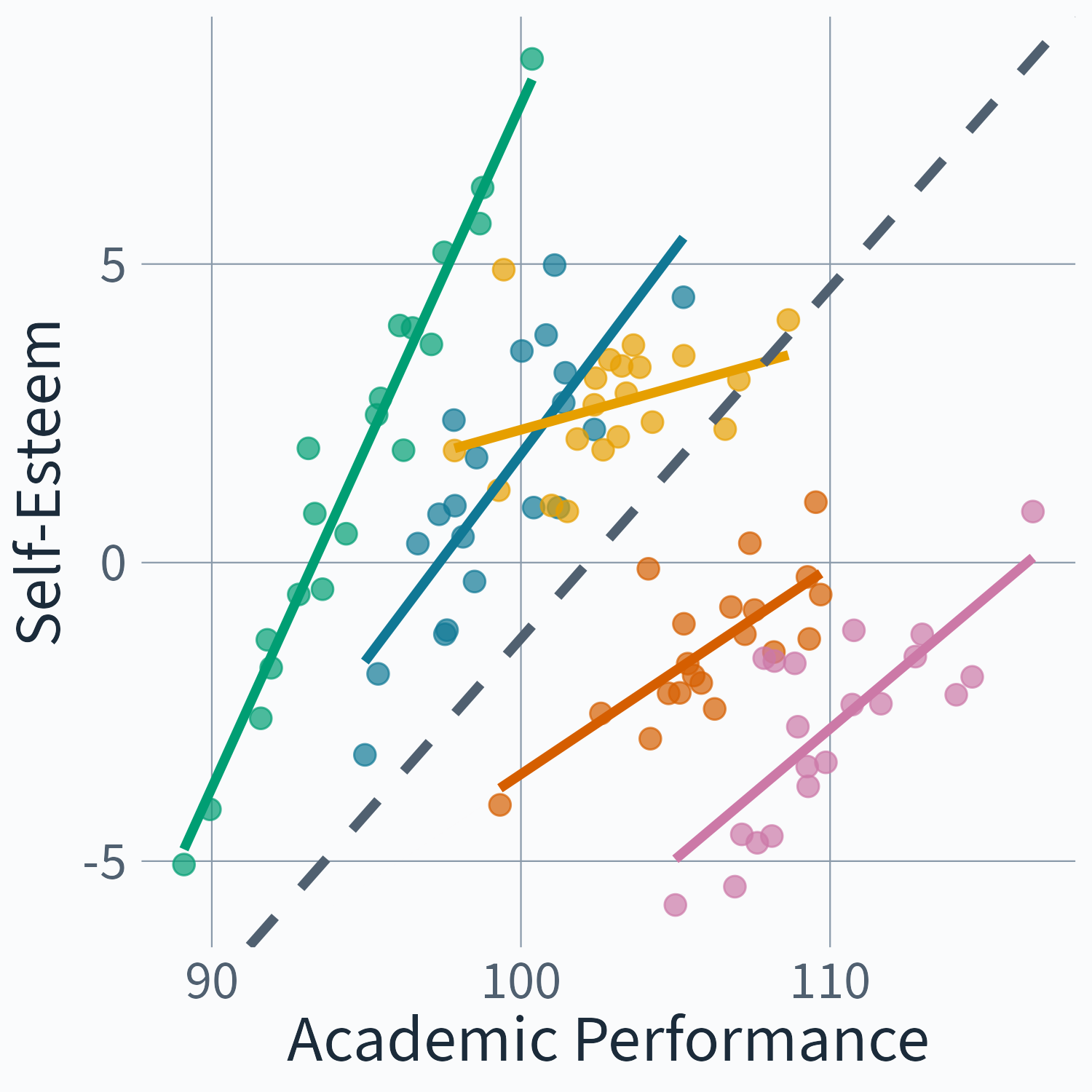 (Illustration of the Big Fish Little Pond Effect based on simulated data, cf. Marsh et al. 2008)